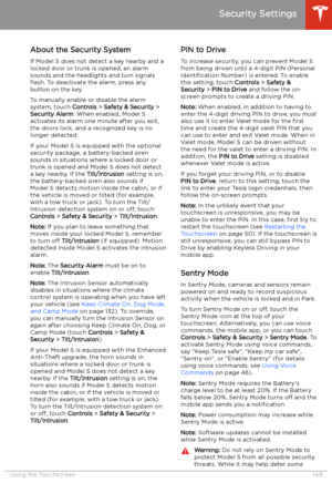 touchscreen.Access information about your Model S. See The Tesla "T" on page 9.Add, configure, or quickly switch driver profiles (including Valet Mode and Easy