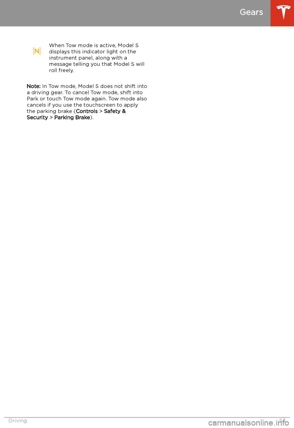 Note: In Tow mode, Model S does not shift into