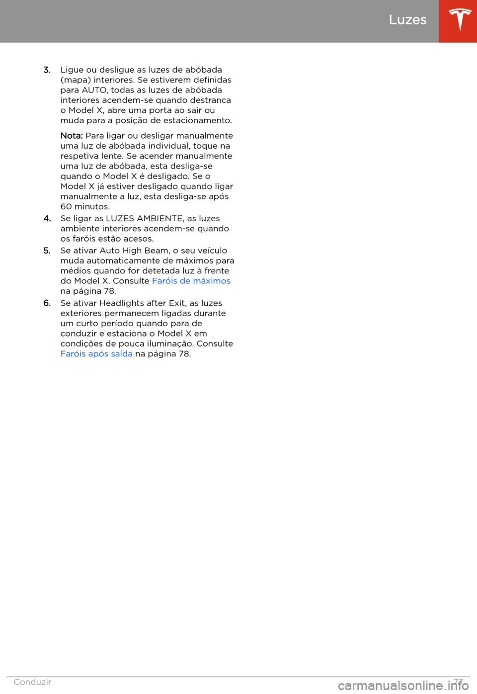Arrancar e desligar Arrancar Quando se abre uma porta, o Model X liga o painel de instrumentos e o ecr