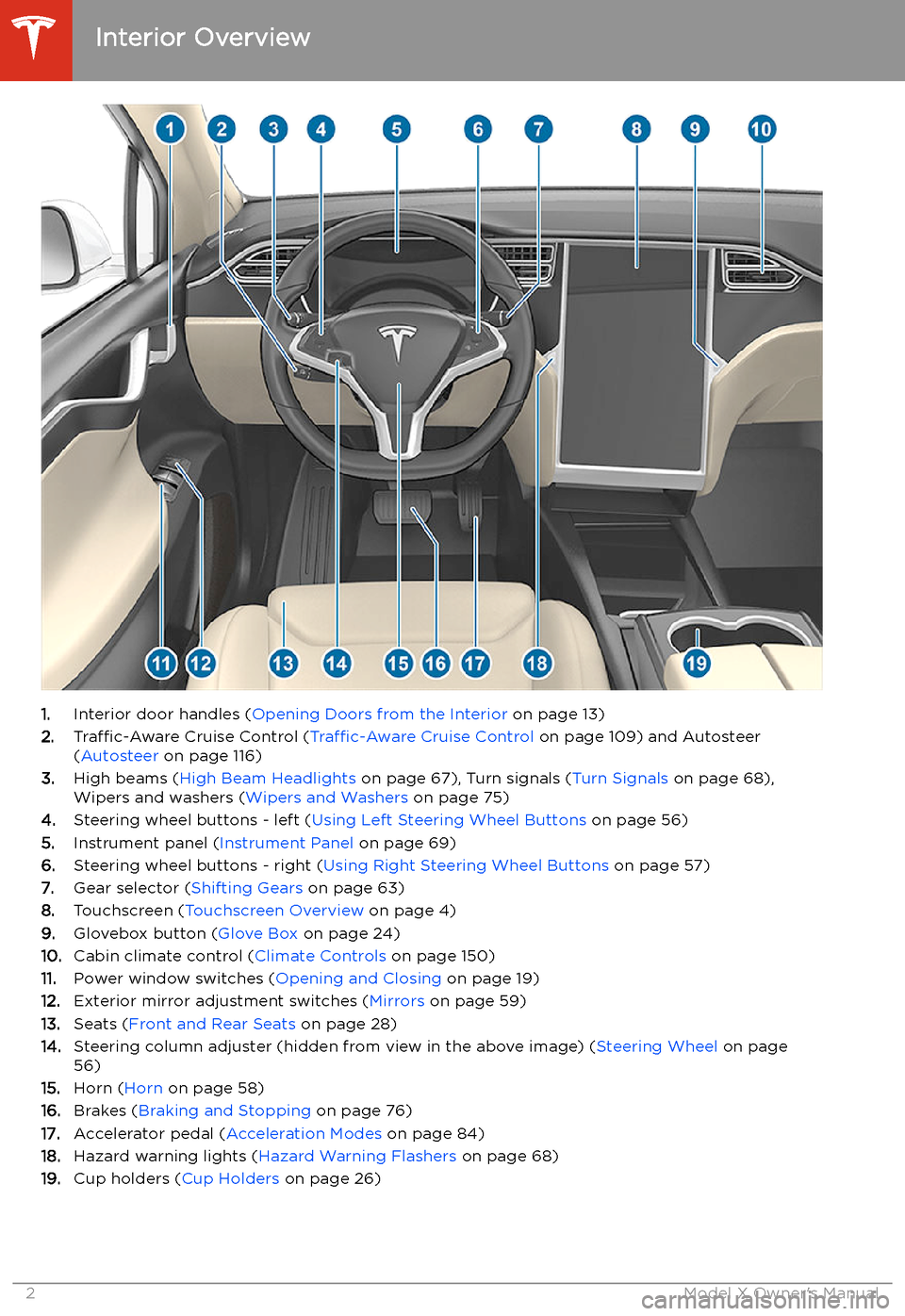 11. Rear view camera ( Rear View Camera on page 89 and About Autopilot on page 106)
