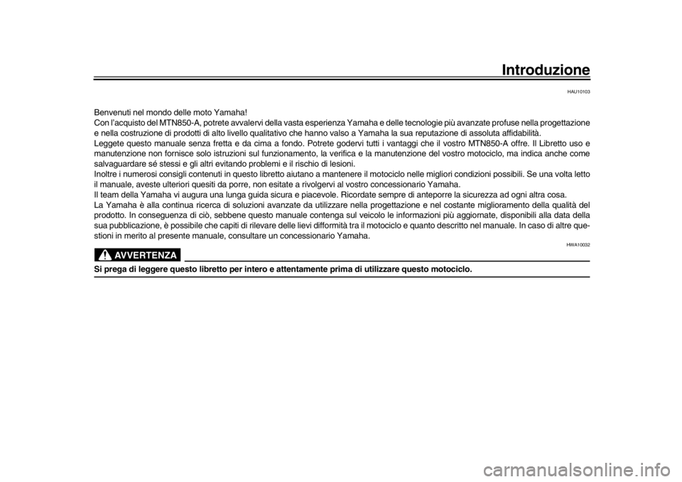 Il team della Yamaha vi augura una lunga guida sicura e piacevole. Ricordate sempre di anteporre la sicurezza ad ogni altra cosa.