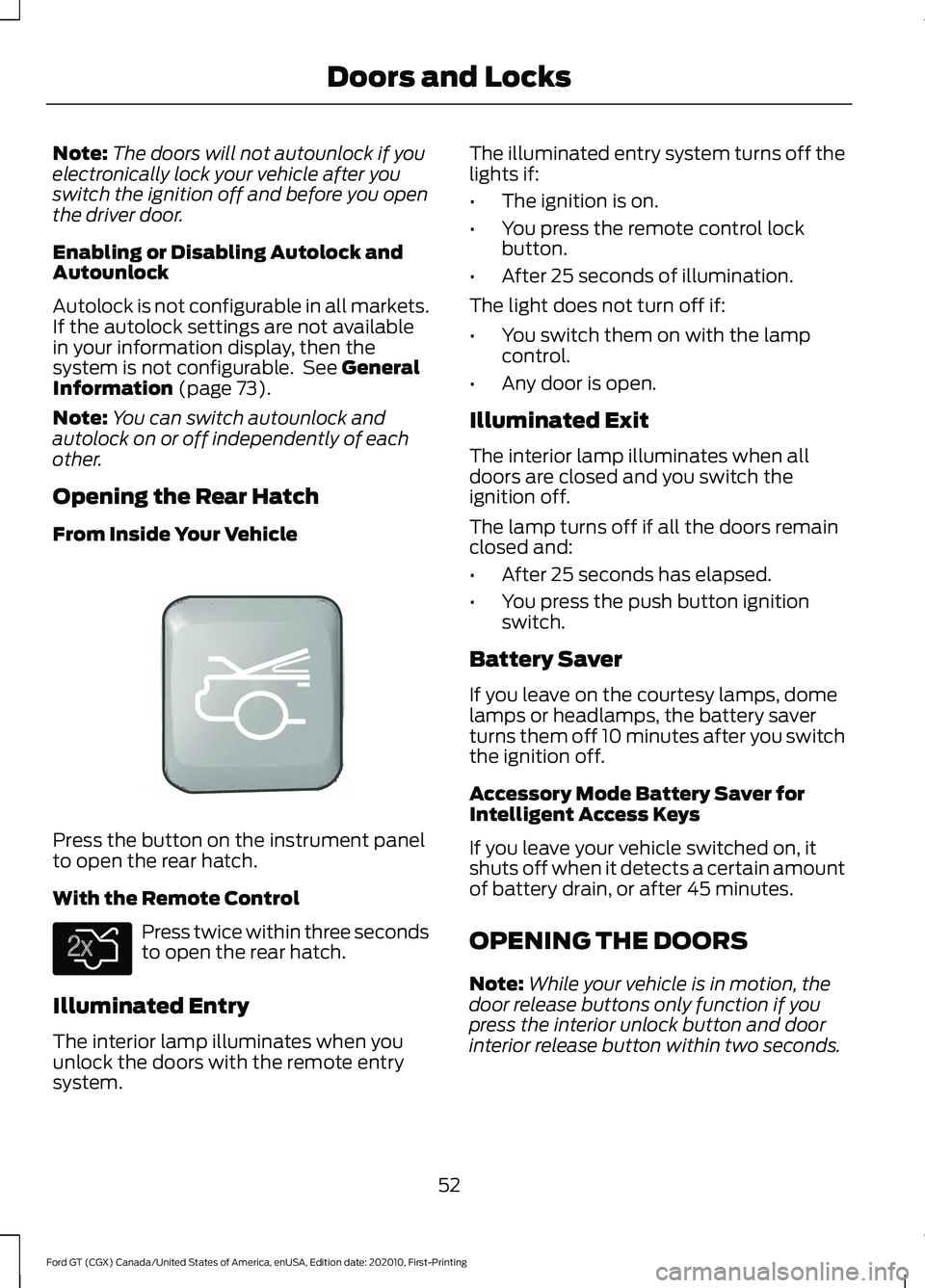 Ford GT (CGX) Canada/United States of America, enUSA, Edition date: 202010, First-Printing LightingE142451 E236438