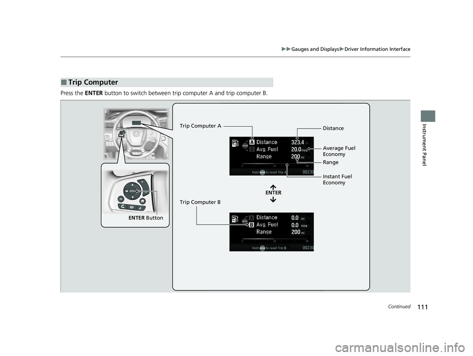 Press the ENTER button to switch between trip computer A and trip computer B.
