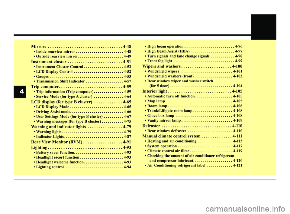 • Inside rearview mirror . . . . . . . . . . . . . . . . . . . . . . . . 4-48