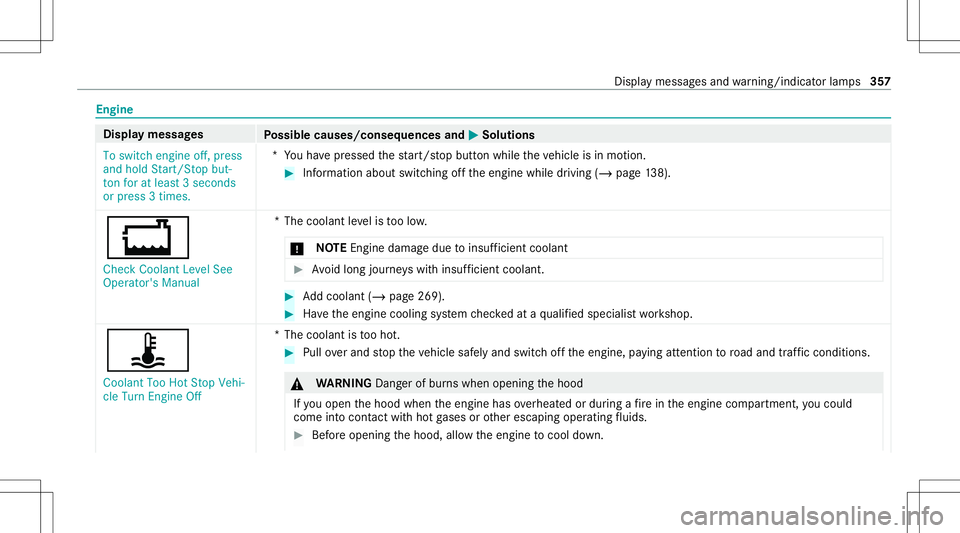Information aboutswitchingoffth eengine whiledriving (/page13 8).
