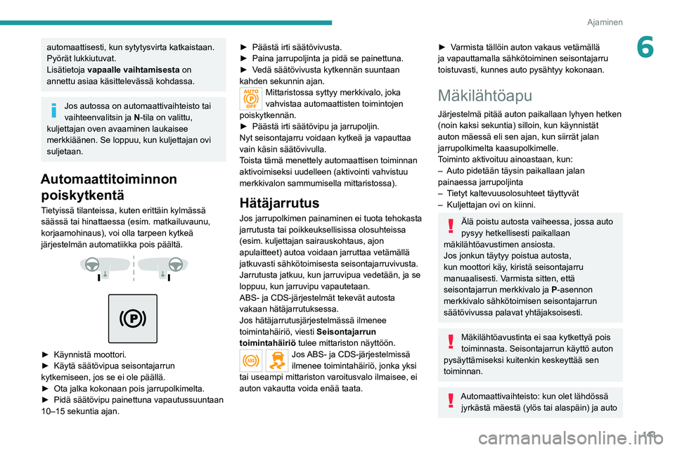 kytkemiseen, jos se ei ole päällä.► Ota jalka kokonaan pois jarrupolkimelta.► Pidä säätövipu painettuna vapautussuuntaan 10–15 sekuntia ajan.