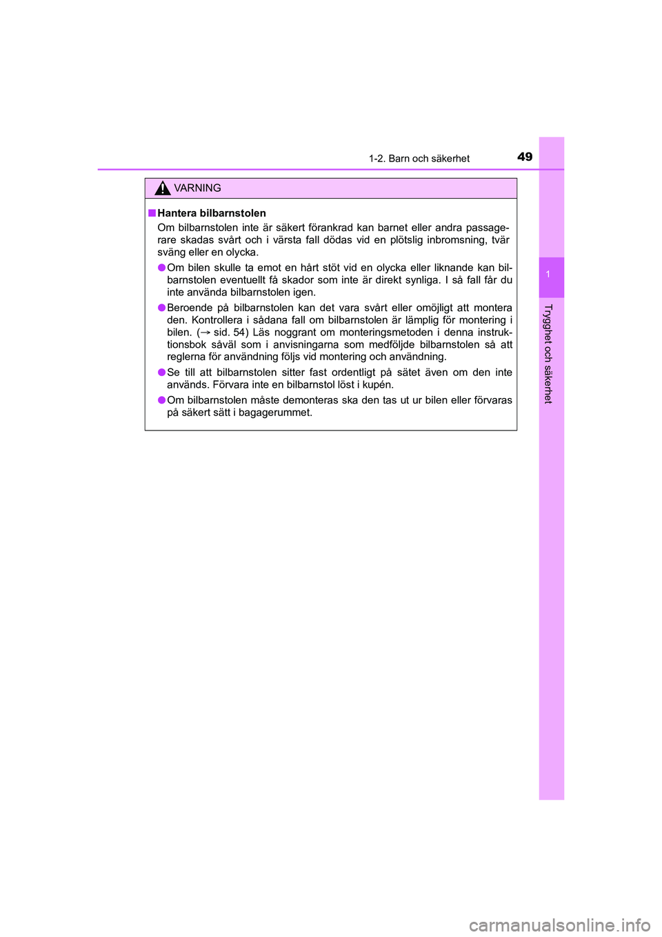 använder eller köper en bilbarnstol. ( sid. 54)