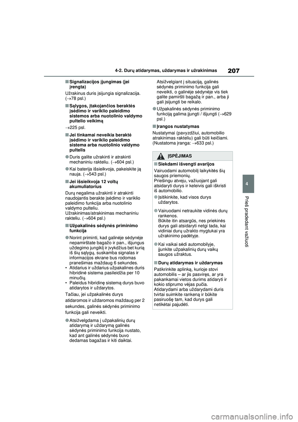 • Atidarius ir uždarius užpakalines duris