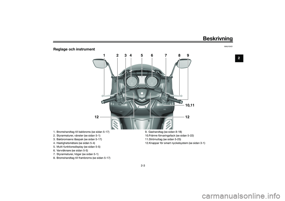 8. Bromshandtag till frambroms (se sidan 5-17) 9. Gashandtag (se sidan 8-18)