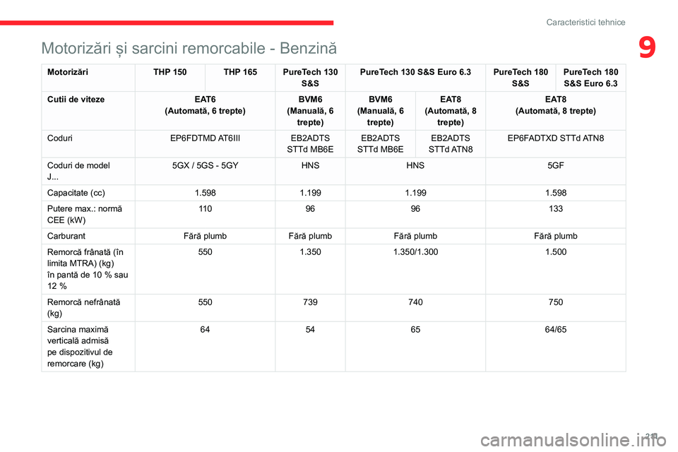 9Motorizări și sarcini remorcabile - Benzină