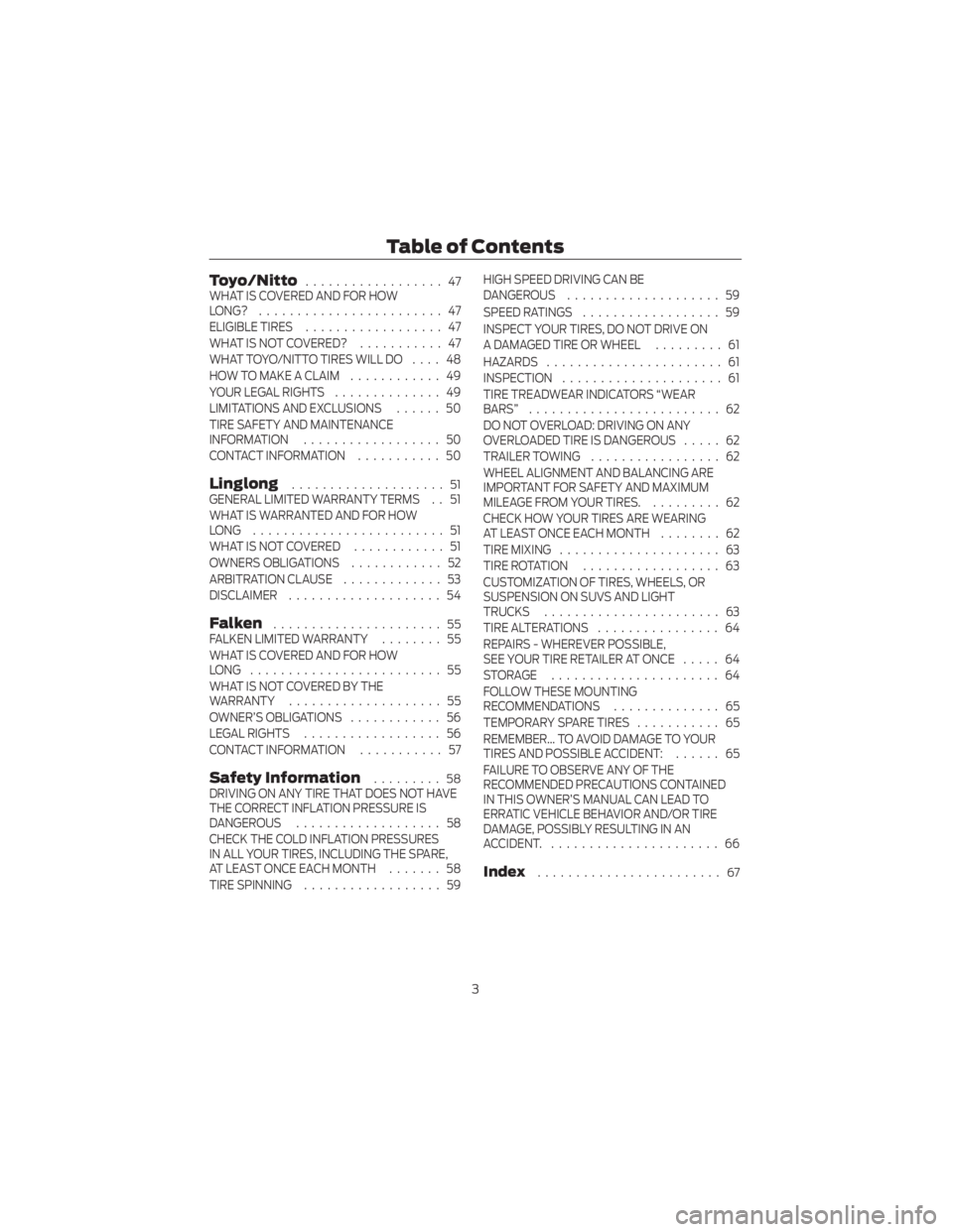 MILEAGE FROM YOUR TIRES. ......... 62