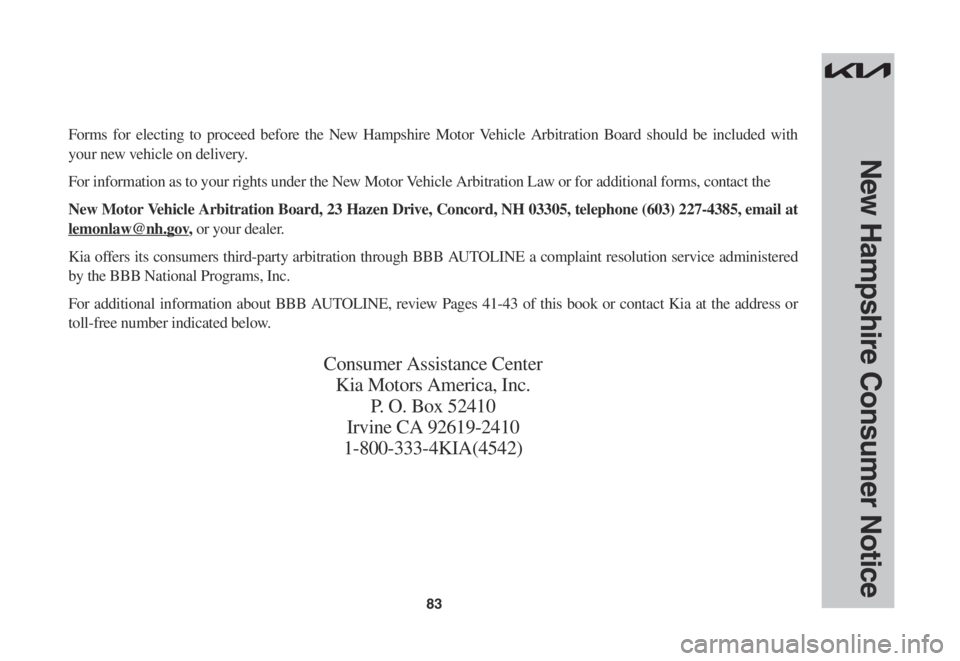 Kia offers its consumers third-party arbitration through BBB AUTO LINE, a complaint resolution service administered