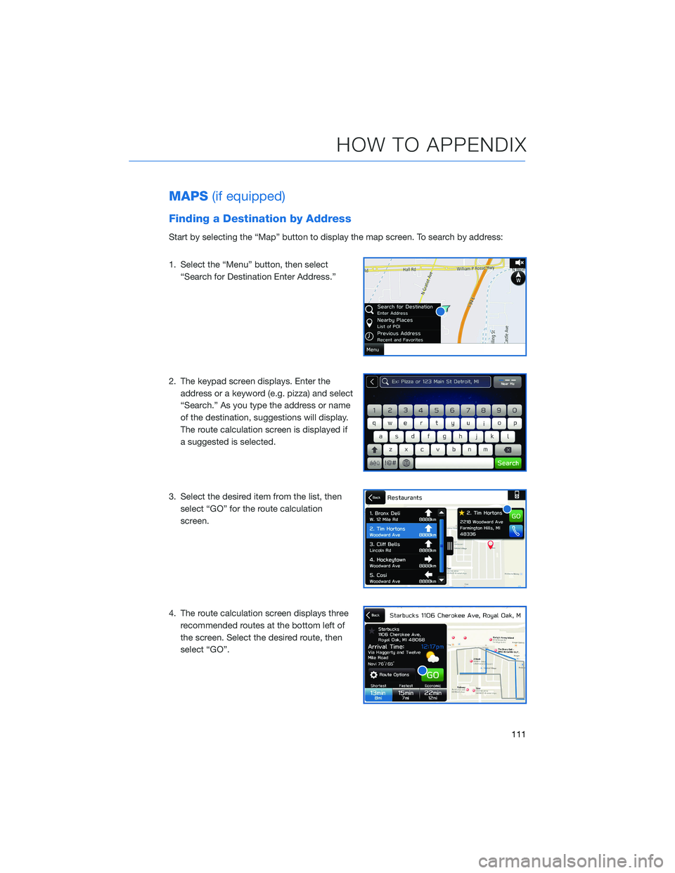 Start by selecting the “Map” button to display the map screen. To search by address: