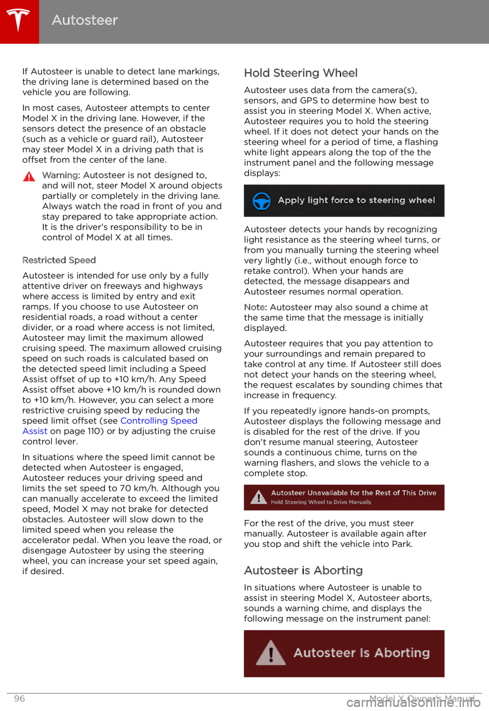 In most cases, Autosteer attempts to center Model X in the driving lane. However, if the